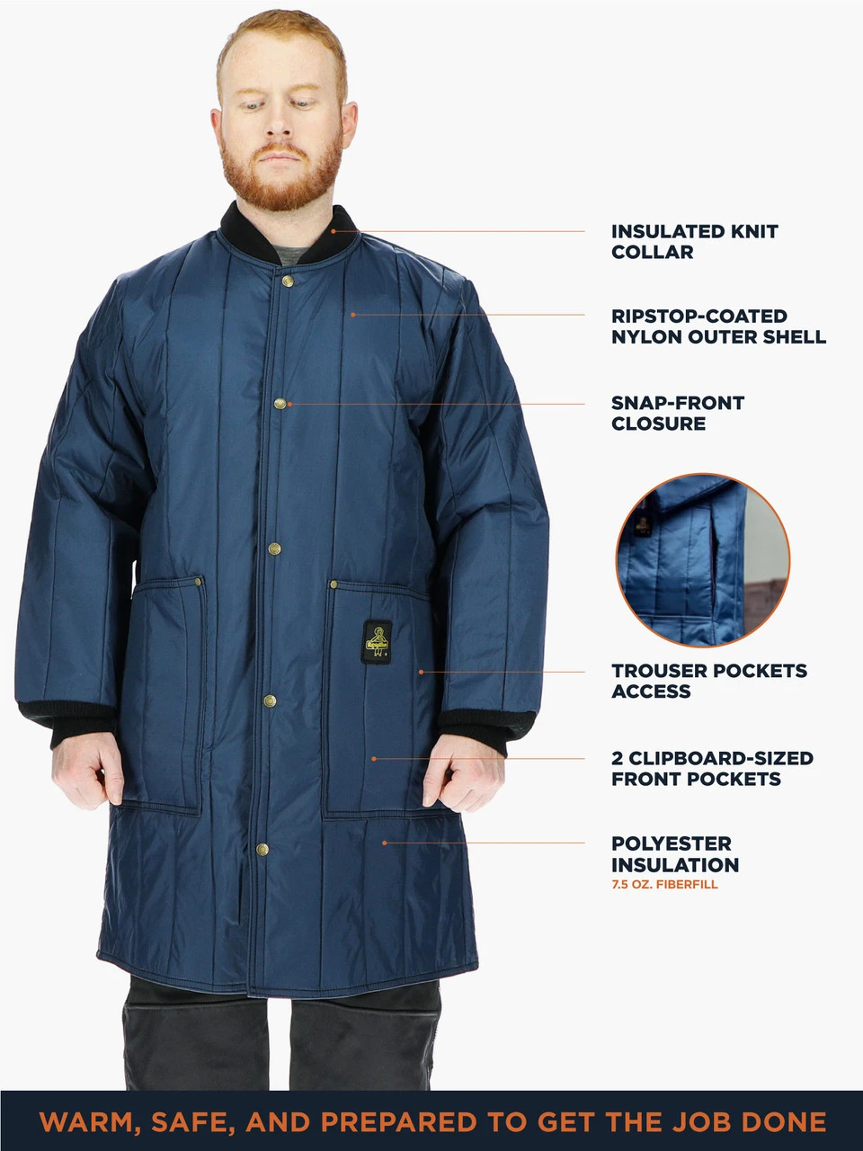 When you’re trading the office or lab for the freezing cold, the Cooler Wear™ Frock Liner has you covered. With a knee length design that fits perfectly under frocks or lab coats, clipboard-sized pockets and protection down to 10°F, this is the liner you need when the job gets cold.