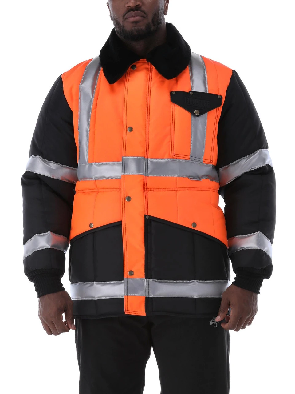 Dirty jobs in low visibility or high traffic areas call for a unique high visibility jacket. The HiVis Iron-Tuff Two-Tone Jackoat keeps you warm down to -50°F, keeps you visible and the black arms and waist help hide the evidence of the dirty work you’re doing all day.