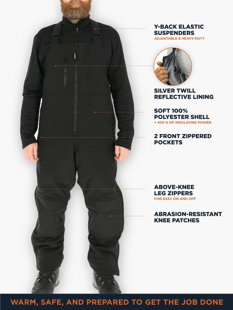 These lightweight thermal overalls have over 400g insulation for maximum heat-trapping capabilities and a water-resistant, wind-tight finish that protects you from rain, snow, and ice. Whether you’re outdoors in negative temperatures or working in an industrial freezer, these insulated work overalls provide you with reliable protection and warmth in any frigid environment. Convenient above-knee leg zippers help you remove these insulated overalls or put them on over your boots. Easily adjust the heavy-duty Y-back suspenders for a secure fit. With 2 front zipper pockets and 1 chest pocket, these men’s bib overalls have plenty of space for hands and tools.