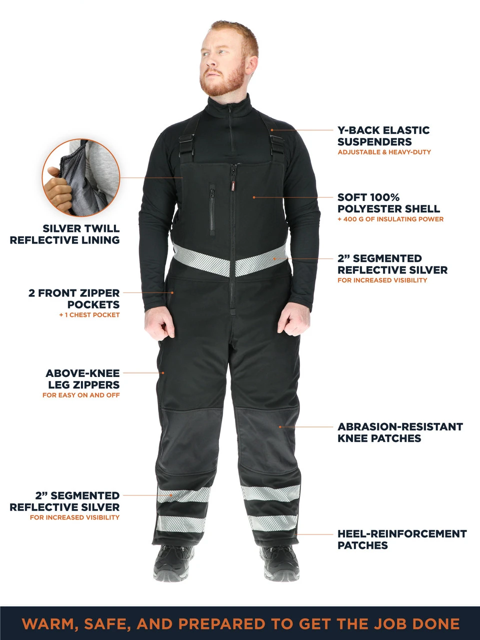 These thermal work overalls give you the durability, functionality and warmth you need to get the toughest jobs done in any conditions down to -20°F. Stitchless bonded 2″ segmented reflective silver tape at chest, back and legs adds durable visibility and helps you get noticed by others working around you.