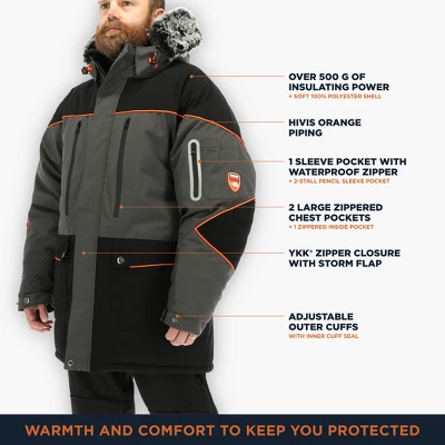- MEN’S WINTER PARKA: The harshest work environments are no match for this men’s jacket. Perfect for all-day shifts in freezers, it’s also the ideal winter jacket for working outside—durable, warm, and just as tough as you are.