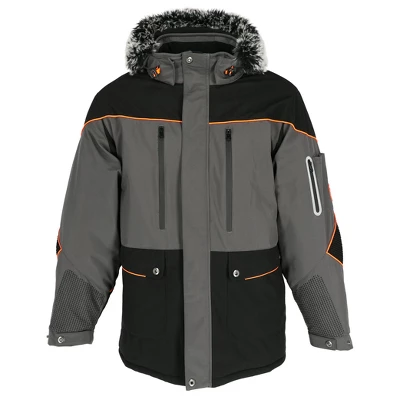 The PolarForce Insulated Parka for Men with Detachable Hood is exactly what you need to work in extreme winter climates. Whether you’re outdoors in negative temperatures or dealing with industrial freezer machines, this jacket can provide you with protection and warmth in any frigid environment. The 500 g of insulation power keeps you warm in any weather, while the detachable hood (with removable fur trim) keeps your headspace comfortable. This winter jacket for men fits a range of sizes, from small to extra-large. The inner waist drawcord keeps drafts out, and a water-repellent, wind-tight finish protects you from rain, snow, and ice. The sleeve pocket, 2-stall pencil pocket, and 2 large zippered chest pockets are large enough for small tools and provide extra warmth for your hands. With protective and tough coverage, this waterproof jacket can help you stay focused on your tasks.