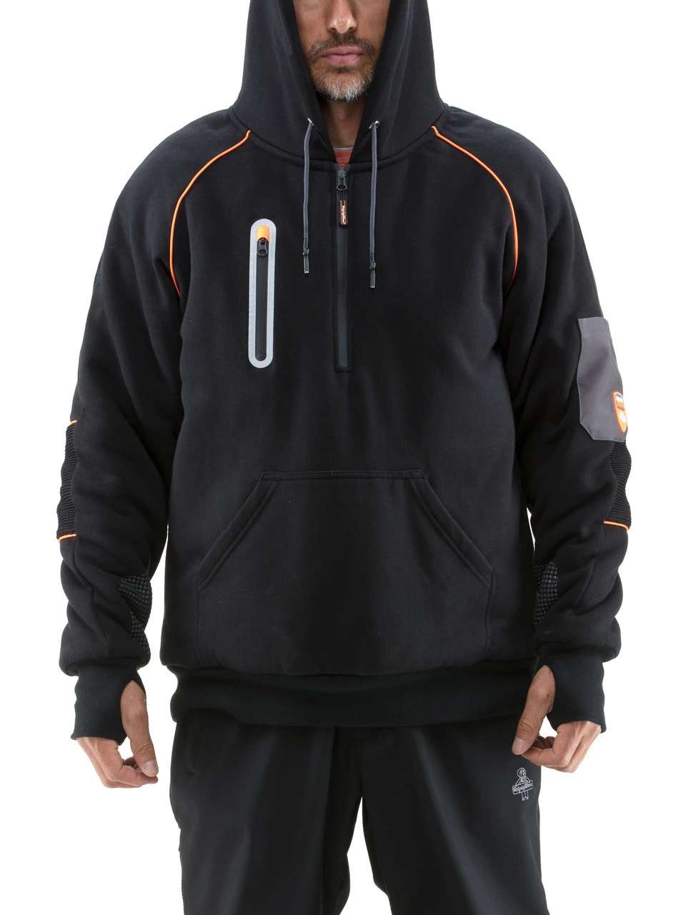 Each thermal hooded sweatshirt has an abrasion-resistant kangaroo front pocket, 1 zippered chest pocket, and a 2-stall pencil pocket on the left sleeve for storage and extra warmth. The attached hood also has drawstrings that pull the hood securely over your head. Fight the cold and be a rock star at work with the PolarForce® Sweatshirt.