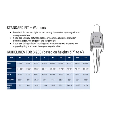 | Size | Dress Size | Bust | Waist | Hips | Inseam |